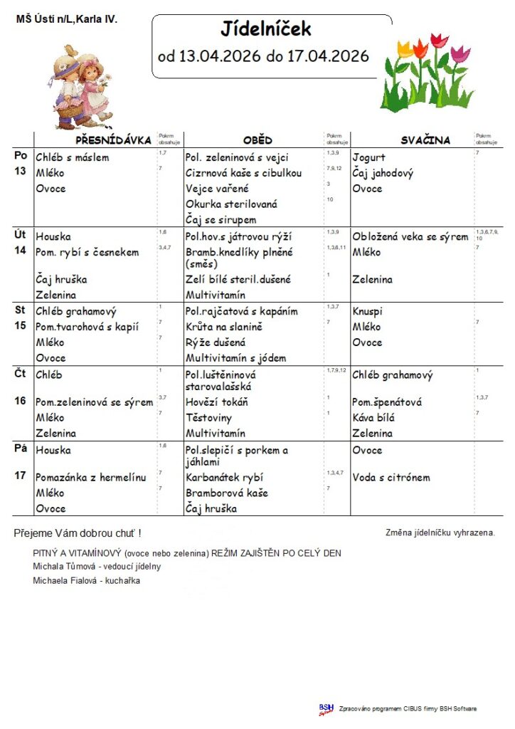 Jídelníček 13.4.2026 – 17.4.2026