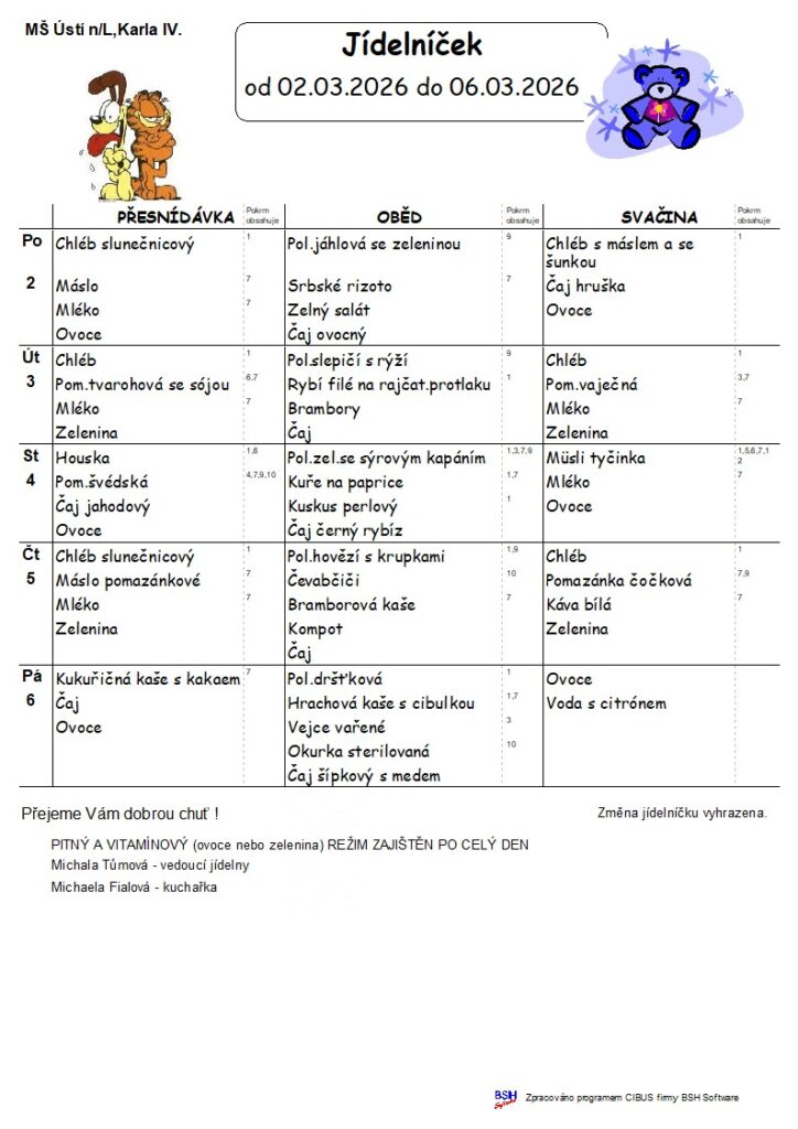 Jídelníček 2.3.2026 – 6.3.2026